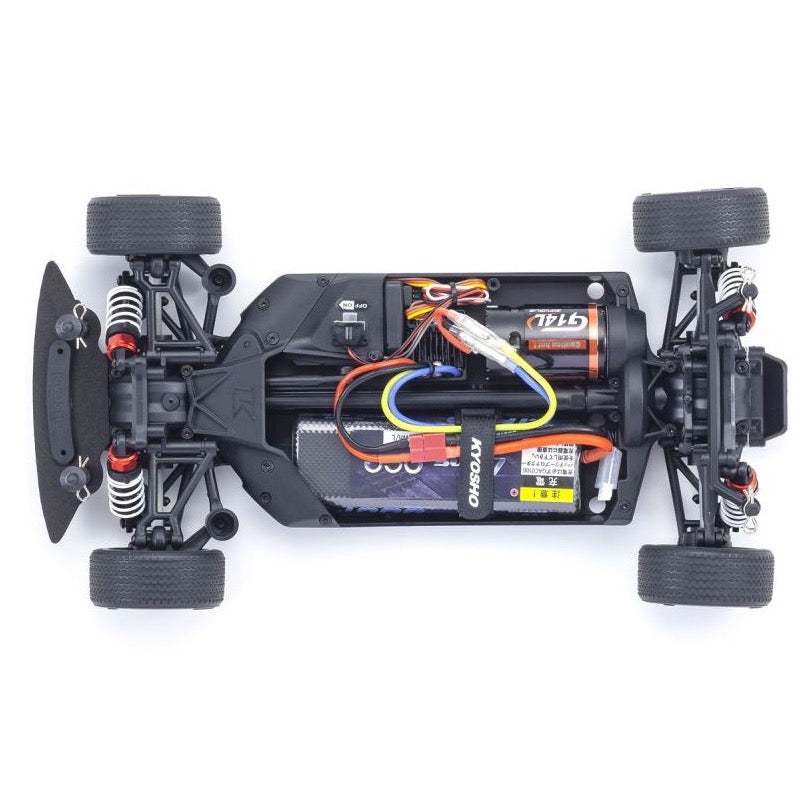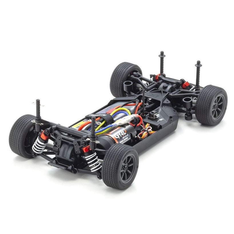 For the pure enjoyment of R/C car driving, the combination of a beautifully reproduced car body with the FAZER series chassis can’t be beaten. Kyosho has taken its standard touring car chassis and given it a full model makeover that has evolved performance to a new level. A simplified design with fewer parts has improved maintenance efficiency and reduced weight while core strength and rigidity has been increased through new materials and ribbing and stiffeners on front and rear. In addition, the symmetrical chassis design synergizes excellent front-rear balance through the suspension with responsive control, irrespective of power source. Featuring slipper clutch, front & rear gear differentials, oil shocks and full ball bearing specs, the high durability and impact resistance allows drivers to unleash the full potential of the chassis. Brake disc wheel hubs with two different offsets (0mm, +5mm) provide compatibility with 190mm and 200mm width body styles and allows the wheelbase to be adjusted to 270mm by replacing some parts (sold separately) for compatibility with other 1/10 scale body styles, in addition the body included. The Readyset package comes fully assembled and includes everything except charger and battery for the chassis, and batteries for the transmitter.