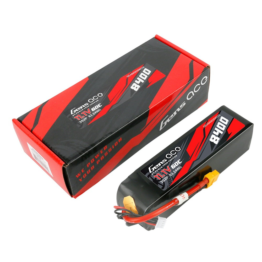 Gens ace 8400mAh 3s2p 11.1V 60C Lipo Battery Pack comes with great power and great low price.