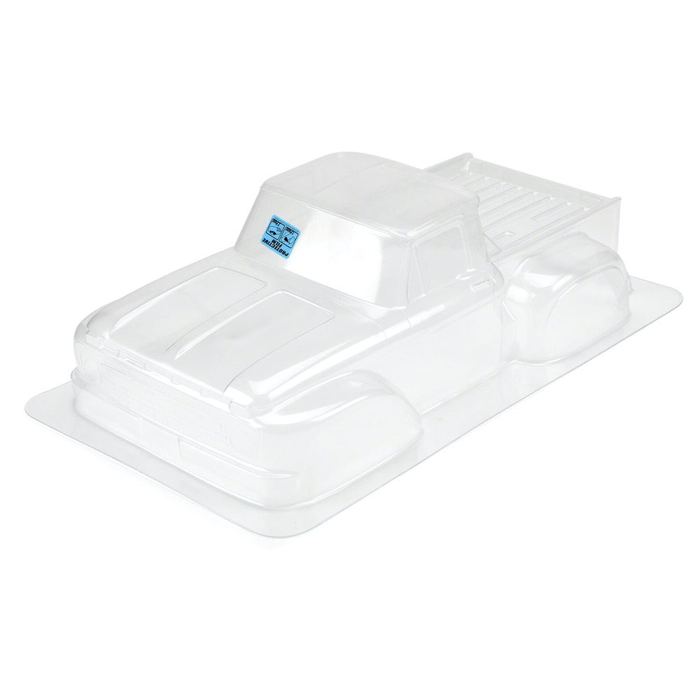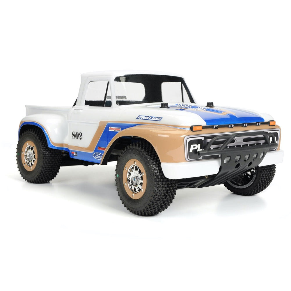 This is a 1966 Ford® F-100 Clear Body for SC trucks with extended body mounts. Now you can have your very own custom "Hay Hauler" with Pro-Line's licensed 1966 Ford® F-100 body! The '66 F-100 body comes with perfectly scaled details like the step-sides and huge fender flares that will bring you back to the good old days. You can even create your own version of the Class 8 Desert Truck that dominated the desert in the 1980's! However you decide to detail your truck, the '66 Ford body will turn heads and transform your SC into the best looking truck around. Get your very own "Hay Hauler" body now!