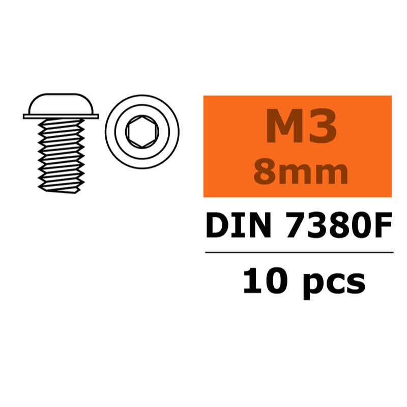 G-Force 0104-002 Socket Low Round Flanged Head Screw M3x8 Steel (10pcs)