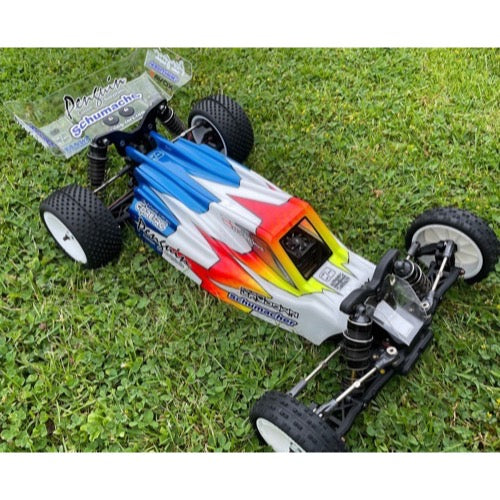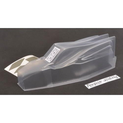 For the Cougar LD2, the VORTEX has the option of being cut longer at the back for rear mounted shocks, and also can be cut shorter for the more conventional shocks at the front.  It has been specifically designed to match the already available 4WD VORTEX shell for the CAT L1.  There are deep artistic ridges on the top and down the sides to help keep the car stable in low grip conditions.