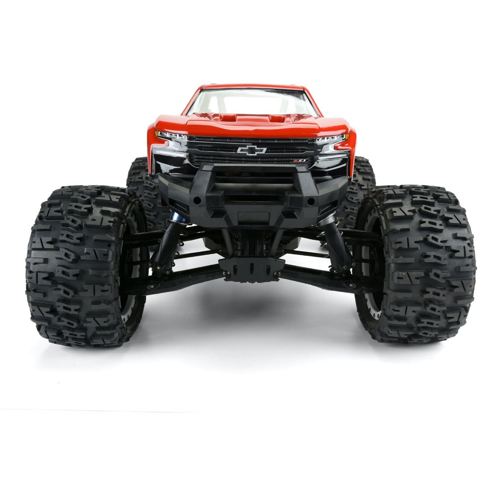 This is a pre-cut 2019 Chevy® Silverado™ Clear Body for X-MAXX®. Pro-Line now has the ultimate licensed Chevy® body specifically made for the X-MAXX® - the 2019 Chevy® Silverado™ Z71 Trail Boss! The just released full size 2019 Chevy® Silverado™ is extremely popular and has a distinct look that will separate your truck from the rest. Pro-Line has included all the aggressive scale detail into the body and sticker sheet for a highly detailed replica and it comes Pre-Cut to get you going faster. This body completely transforms your X-MAXX® into an even crazier Bash Machine and allows you to add a custom paint job! Give your X-MAXX® the tough off-road look it deserves with Pro-Line's new Chevy® Silverado™ body!
