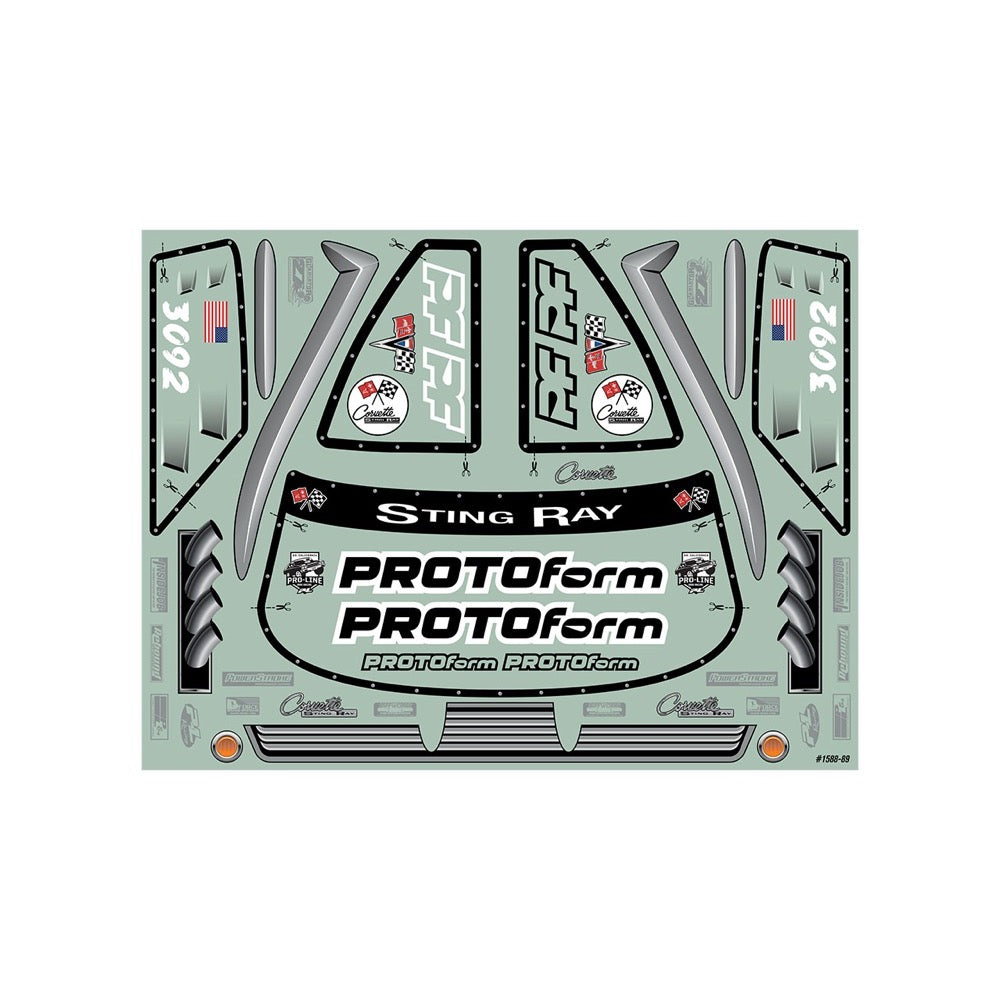The '63 Corvette Stingray™ Pro Mod body is Made in the USA from our crystal-clear polycarbonate and includes a detailed decal sheet and window masks. Give your SC drag car the most unique look at the strip with PROTOform's Corvette Stingray™ Pro Mod!