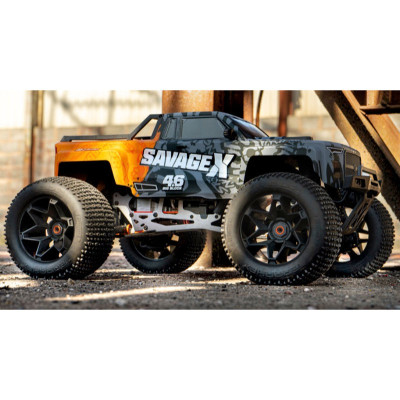 From the new Super HD Drivetrain, to the Bulletproof 29/9T Differentials, to the new Rugged Bumpers, every inch of the Savage X 4.6 GT-6 is built to survive and dominate. With beefy suspension arms, ready to take the punishment of big-air drops while everything within is protected by the reinforced thick aluminum TVP (Twin Vertical Plate) chassis, emblazoned with the notorious 'X' emblem.