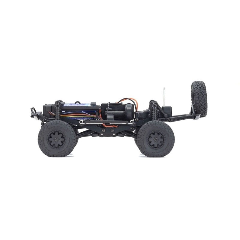 In 2019 the world's most popular mini RC series, known as the Kyosho MINI-Z, celebrated more than 20 years of unmatched performance and scale realism in the hobby-grade RC category. The continuous pursuit of performance and evolution has led to the creation of a completely-new ‘MINI-Z 4x4’ design that delivers an all-new driving experience for RC fans of all stripes, with superior overall design, driving performance and high-quality injection-molded scale body construction. A significant feature of the MINI-Z 4x4 series is the greater emphasis of body detail and quality of finish that even surpasses existing benchmarks set by the MINI-Z. The body is also molded with thicker material to better resist crash damage from operation in rough terrain. Incorporating the same ladder- style frame of real 4WD vehicles, the MINI-Z 4x4 boasts a 3-link rigid axle suspension combining what would normally be two upper links into a single upper A-arm to deliver maximum suspension movement. A specially designed high-torque steering servo enables this machine to throw its elbows around in the hard terrain for excellent performance in the toughest rock-crawler conditions. The high-torque 130-size motor brings out the beast in the MINI-Z 4x4, specially geared to run well in the low to medium speed ranges common in crawling.