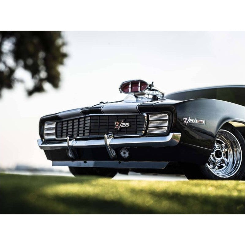 From its release, the Chevrolet Camaro model defined a new era of American Muscle. This 1969 Z/28RS embodied a 5000cc engine and was equipped with auxiliary lights and headlight covers for rally driving. This model features Kyosho’s original supercharger to enhance its formidable appearance.