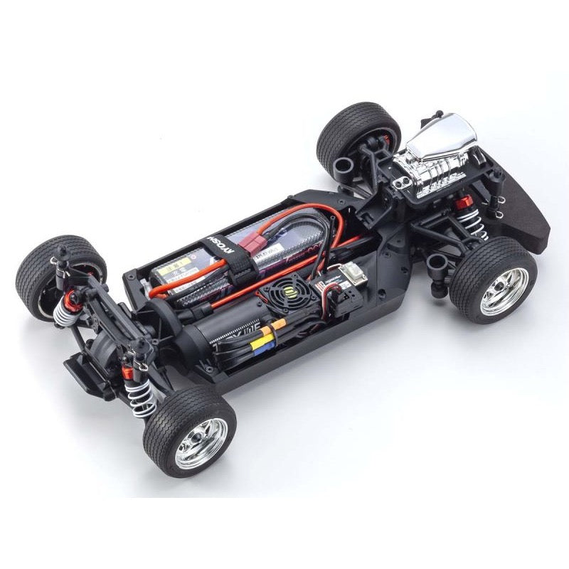 Designed and built for the pure enjoyment of R/C car driving, the FAZER Mk2 welcomes this brushless motor addition to the series. Powering up from the conventional G14L brushed motor to the TORX 10E brushless motor, the 1.6 x speed boost delivers 65km/h (up from about 40 km/h) backed up by the newly incorporated BRAINZ 10 speed controller, sintered pinion gear and aluminum HD center shaft S (previously an optional upgrade) to support the extra power and higher RPMs. This fully upgraded version of the VE specifications boasts an ultra-scale 1969 Chevy® Camaro® Z/28 RS body much loved in America, with a Kyosho designed supercharger, and features light buckets that can be equipped with front and rear LEDs and open/close function for concealed headlights. Kyosho’s original color scheme pays homage to the rebel image of this machine and this ‘1969 Chevy® Camaro® Z/28 RS’ is packaged as a pre-built Readyset, so its easy even for beginners to enjoy without delay. Just use your own battery, battery charger and transmitter to experience the first brushless motor-powered model in the VE series!