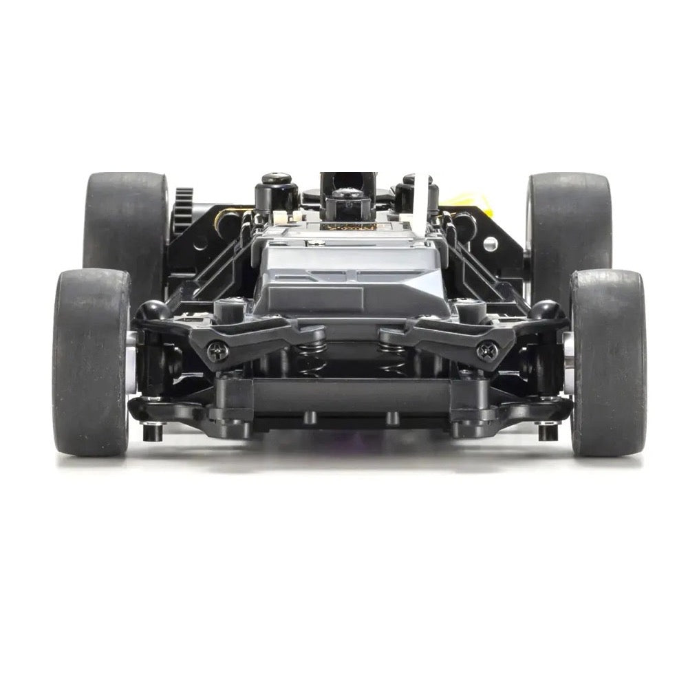 Enjoy the full experience of high-performance R/C car racing right out of the box; just insert batteries into the car and transmitter. This is the simplicity of Kyosho Readyset packages. The small scale of the MINI-Z Racer is ideal for driving indoors and for people just becoming familiar with R/C cars. This MINI-Z RWD Readyset includes a renewed 2-wheel drive chassis at its core. Previous Readyset packages incorporated the 3rd generation MR-03 chassis, but the new RWD Readyset includes the 4th generation MR-04 chassis that was first released in 2023. While retaining some basic elements of the MR-03 design, the new MR-04 demonstrated its lower center of gravity and remodeled steering design with blistering speed and excellent handling in the top-of-the-line EVO2 debut model. The MR-04 chassis is mounted with R/C system and features a completed body finished to display model standard. This Readyset includes the same standard MR-04 chassis as other high-end MR-04 models and includes user-friendly 130-class brushed motor and the reliable Syncro KT-531P pistol grip transmitter. Just insert 4 x AAA alkaline batteries into both the car and the transmitter, and you’re ready for the fun to begin. High-performance comes straight from the standard setup, but you can tune up for elite-level performance with a wide range of MINI-Z optional parts. With its dynamic maneuverability display model finish, the updated MR-04 chassis takes the authentic R/C experience to a higher level.