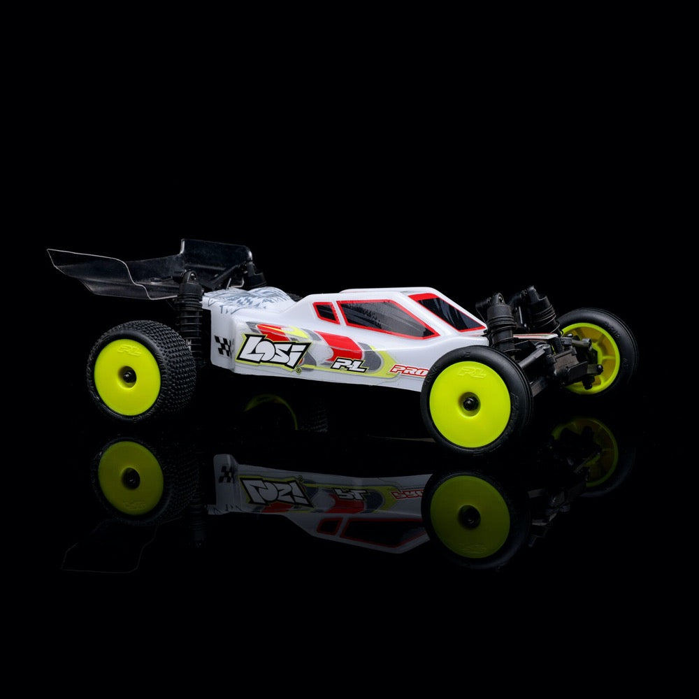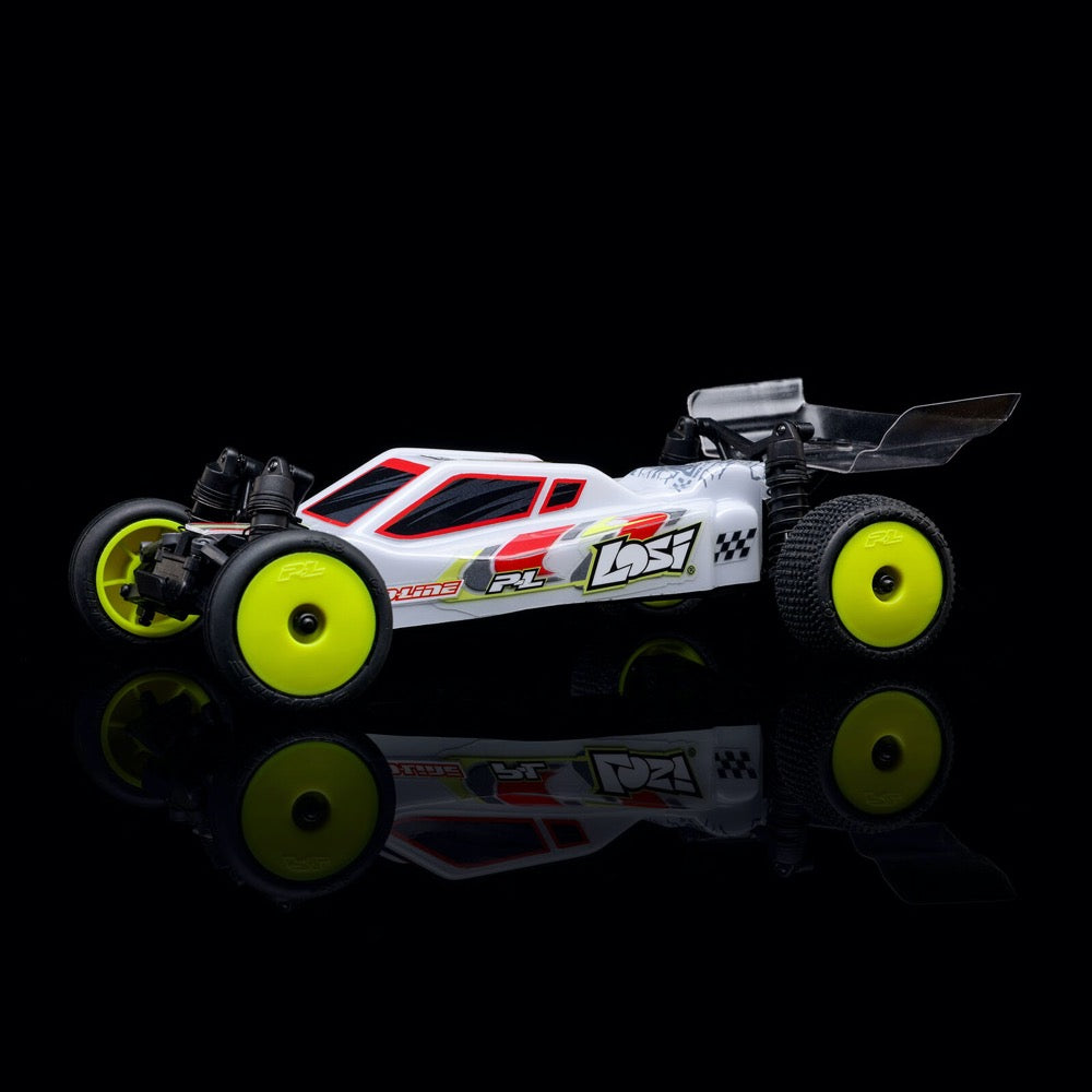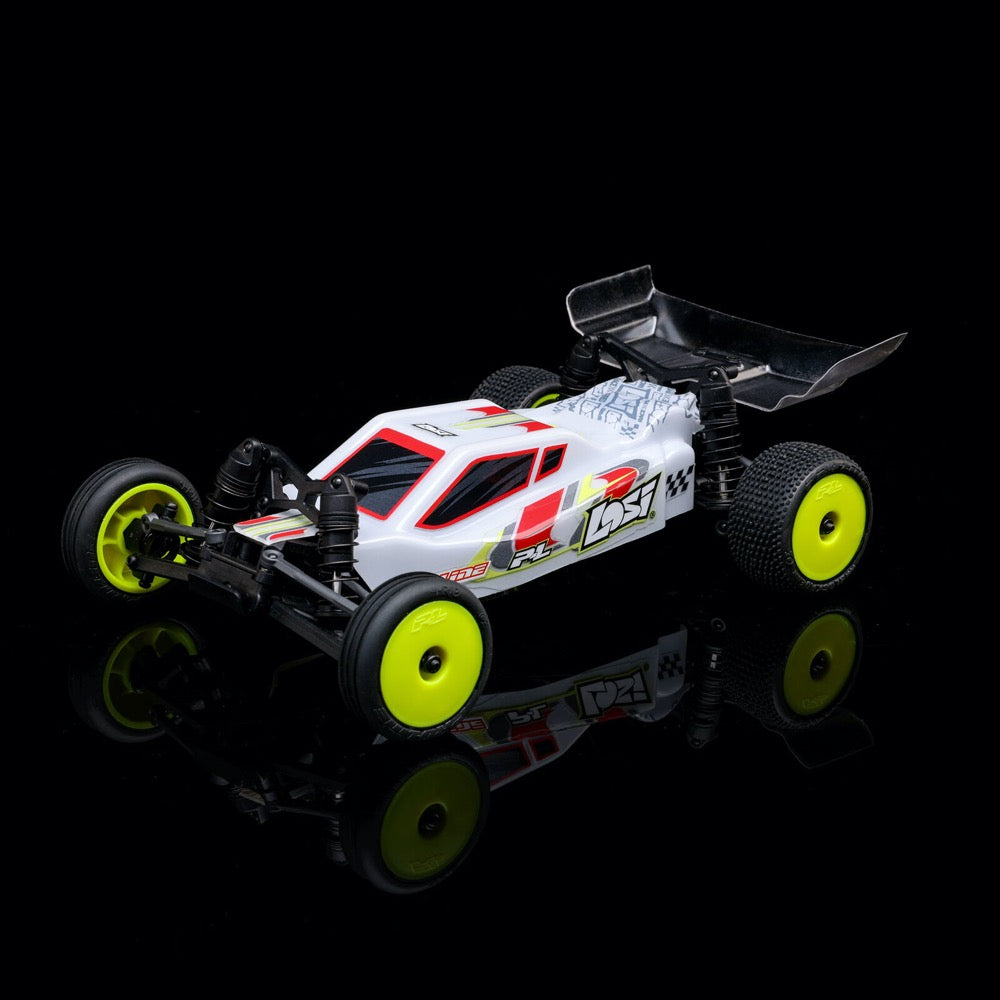 The included Pro-Line Racing body, wheels and tires are exact same design found on racetracks around the world — another example of what makes the Losi Micro-B one of the best micro RC buggies available!