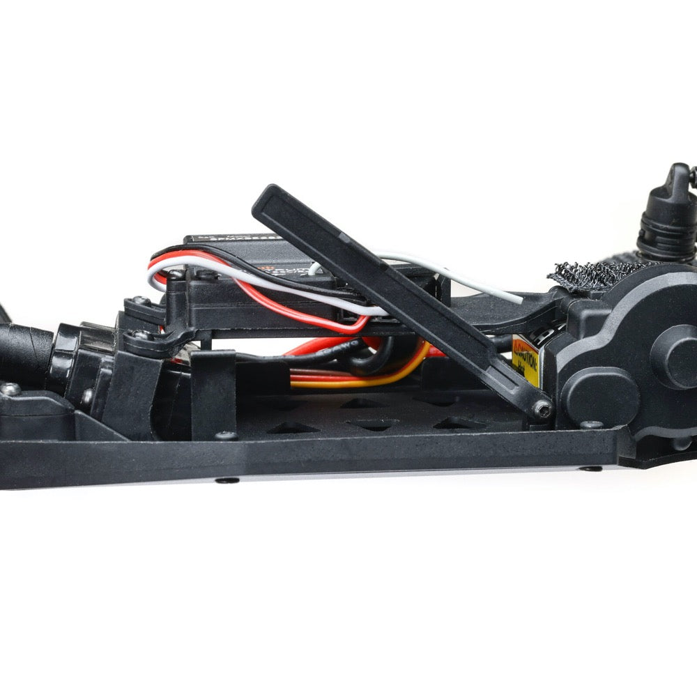 The Micro-B buggy's next-level aluminum chassis is an RC industry first for micro vehicles. Inspired by the championship-winning TLR racing buggy, the Micro-B chassis includes front caster kick and side bends to create a strong and rigid foundation.