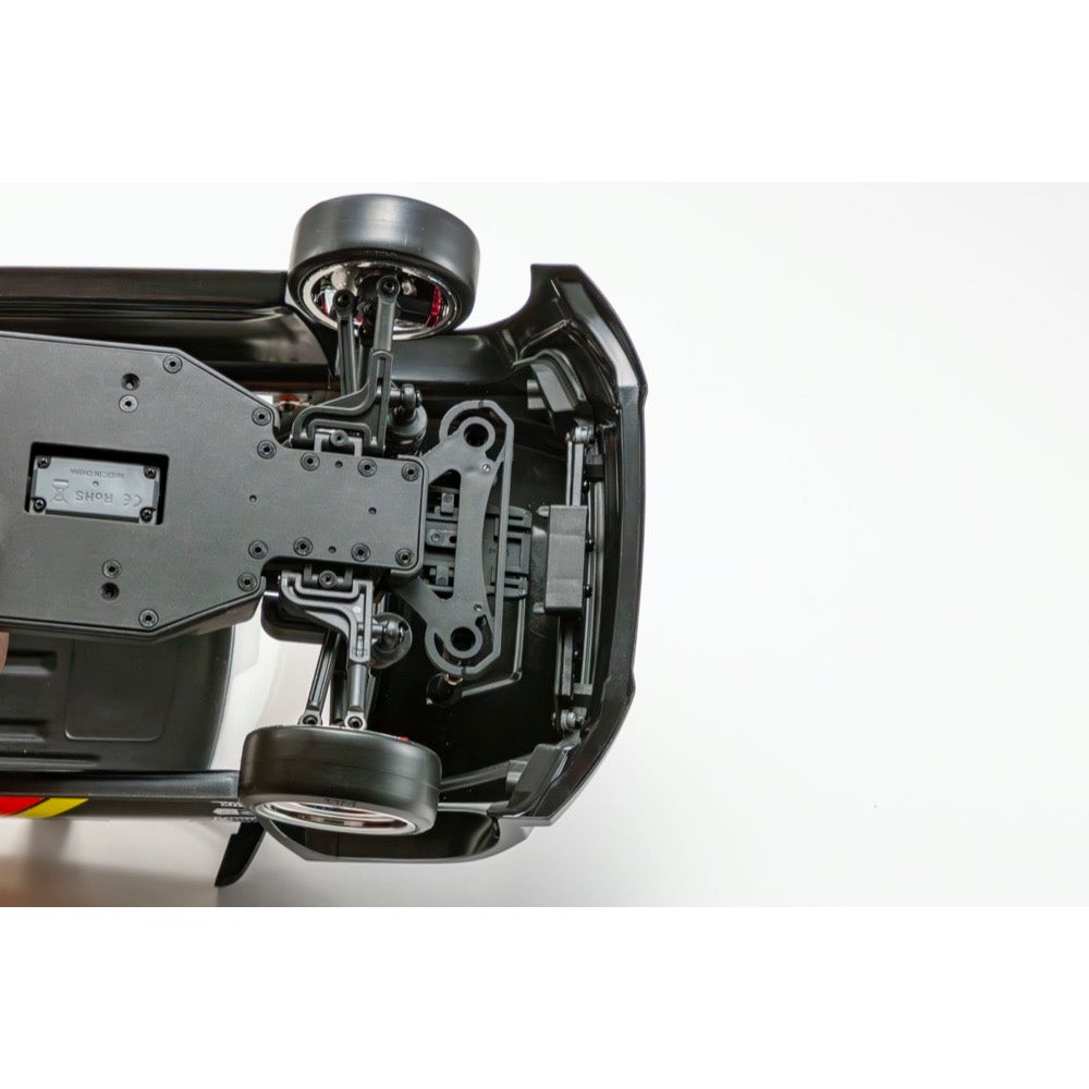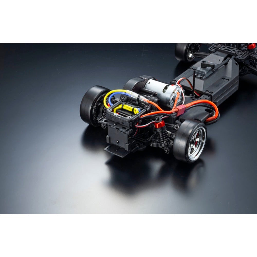 Completely new drift-spec RWD chassis design features pre-installed R/C system and receiver with built-in gyro. Suspension and motor mount are specifically designed for drift performance.