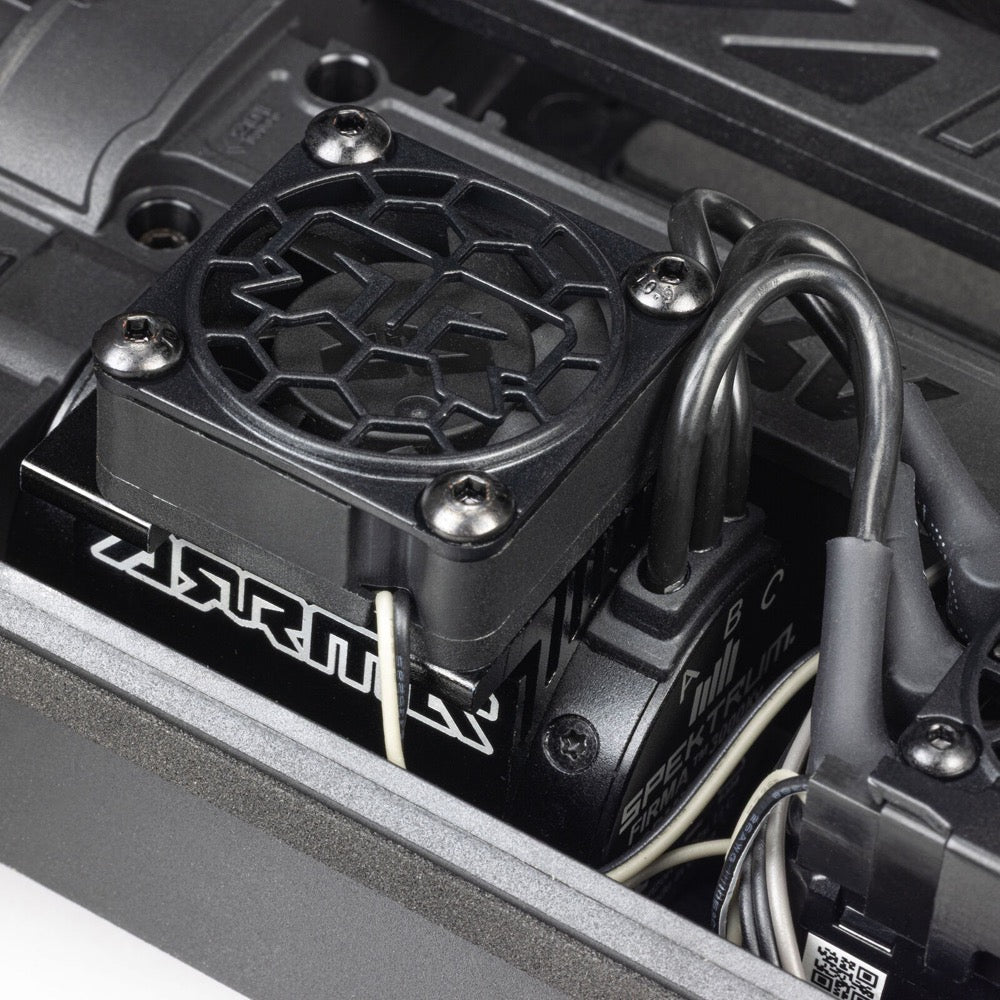 Its compact footprint hides a full arsenal of ARRMA strength. The mini chassis uses reinforced components and heavy-duty bumpers for the kind of durability that lets you go wild without thinking twice. The aggressive body comes in bold factory paint with a quick release clipless system for fast pit stops and even faster bragging rights.