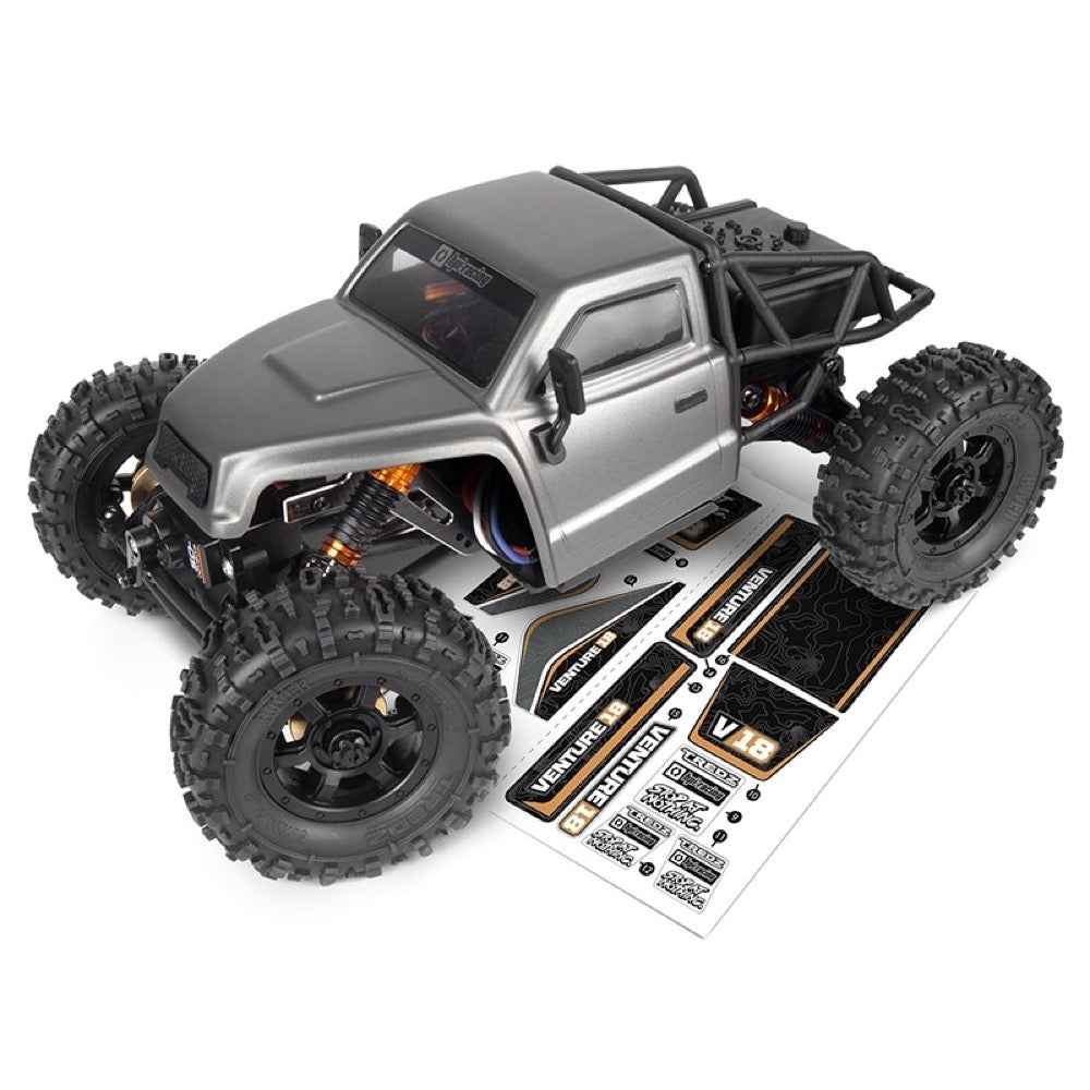The Venture18 CC features a meticulously crafted Ridgeline Half Cab body, designed to impress with its detailed realism and rugged style. Highlights like the grille, mirrors, rear roll cage, and tank add to its authentic appearance and enhance the overall aesthetic, making your Venture18 CC stand out in any setting.