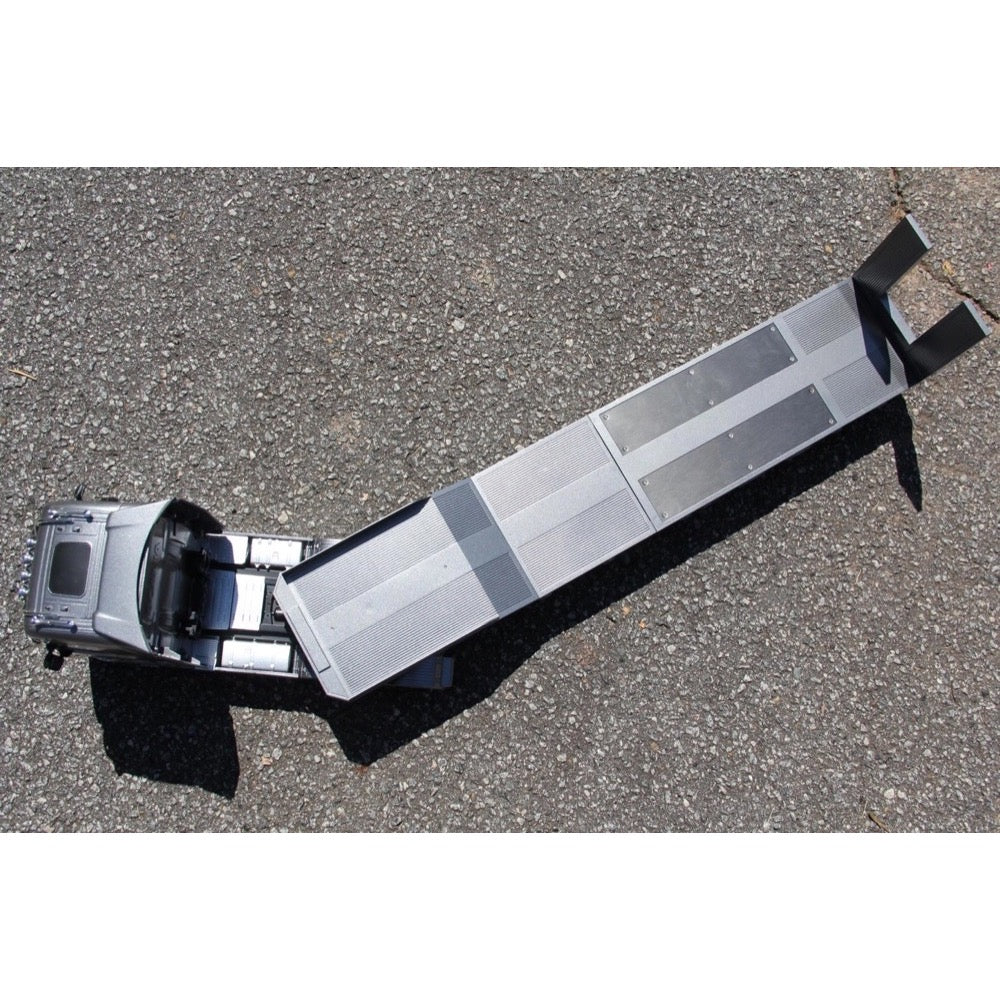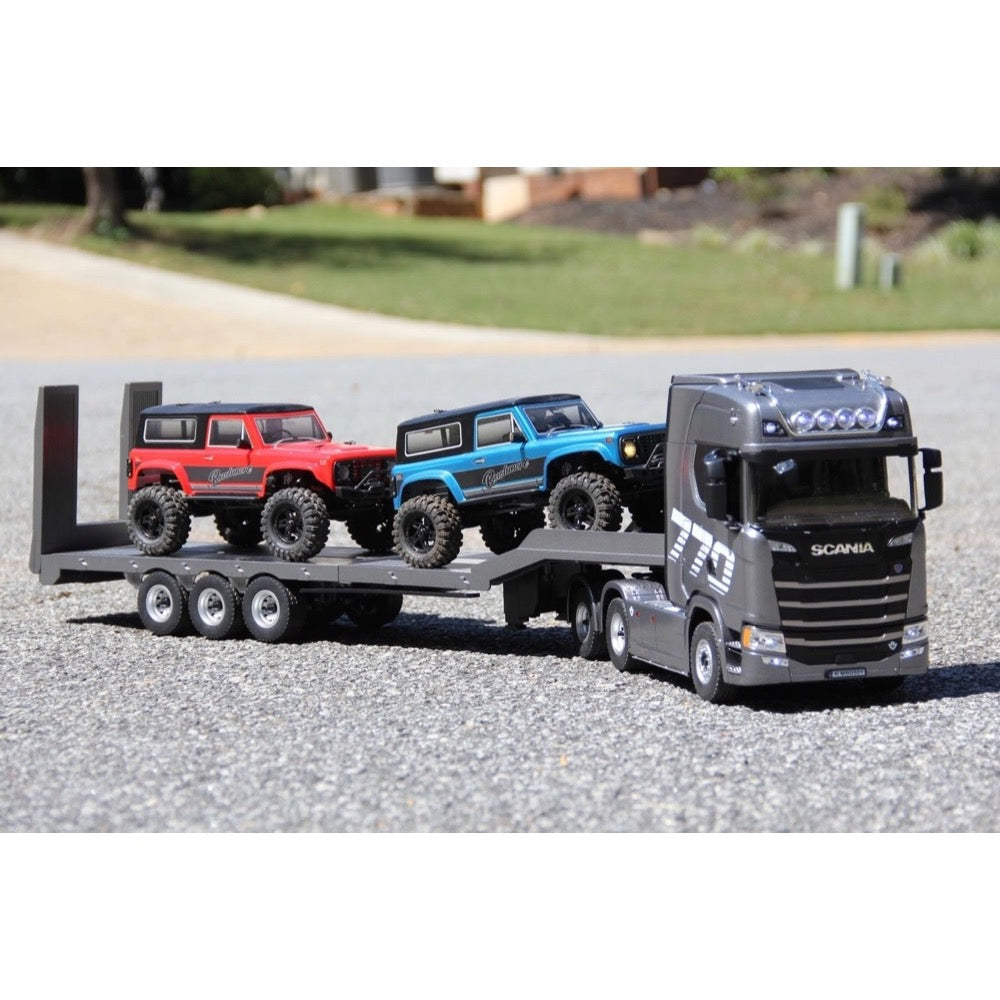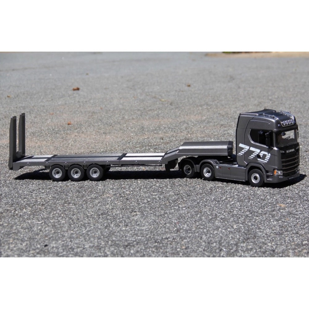 The Huina 1502 1/18 scale trailer is the perfect companion for the 770S tractor, featuring retractable support legs and operating ramps that are controlled via the transmitter.