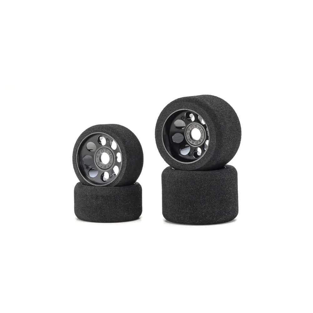 Includes black front and rear wheels adopted from the Fantom EP-4WD Ext 60th Anniversary Model. As the tires come pre-glued and trued in the kit, there is no need for adjustment with a tire setter.