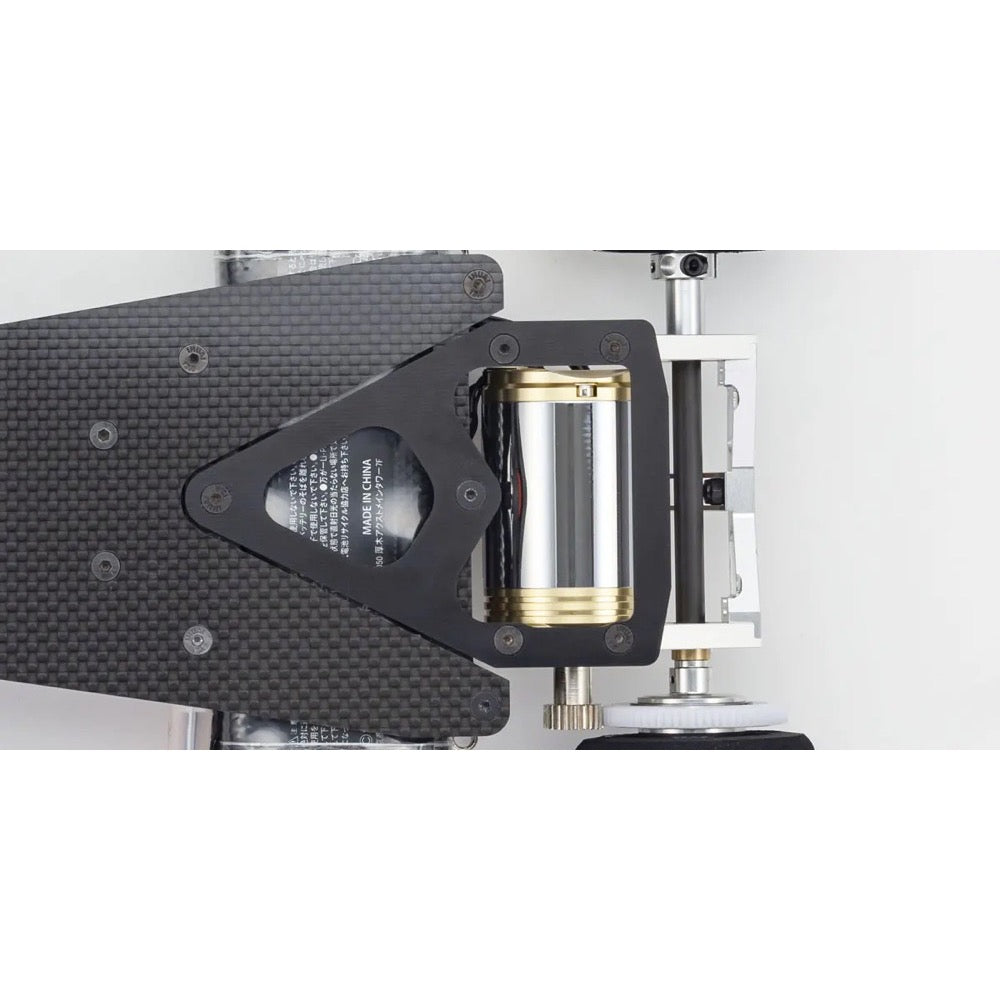 • Equipped with a high-rigidity carbon main chassis & upper plate with an FRP rear A-bar that enhances tire grip with moderate flex.