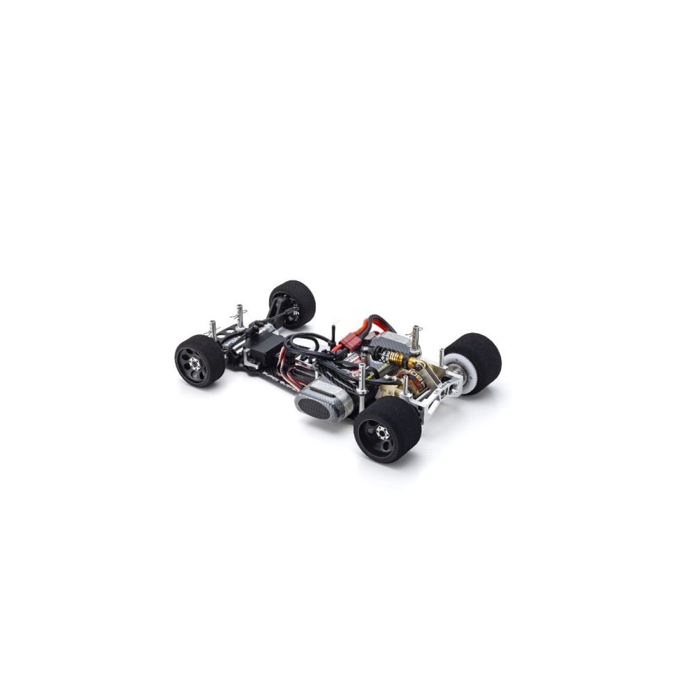 Simple rear-wheel-drive 2WD model in the classic style of 1/12 on-road racers from the 1980s. Features king-pin spring front suspension and a rear 3-point suspension system with A-bar configuration.