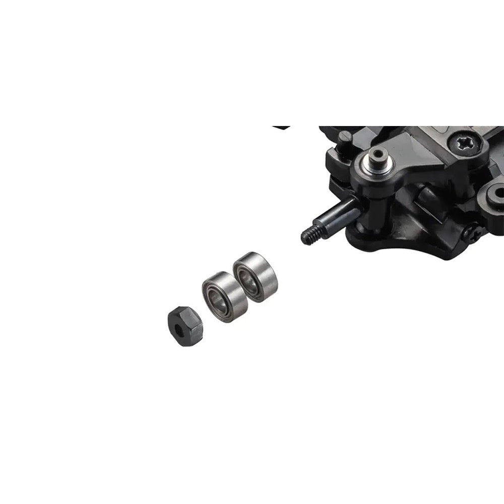 New front knuckles with integrated kingpins reduce scrub by 1.5mm on each side compared to the MR-03, realizing sharper and more linear control. The change to 3mm inner diameter ball bearings also reduces rotational resistance.