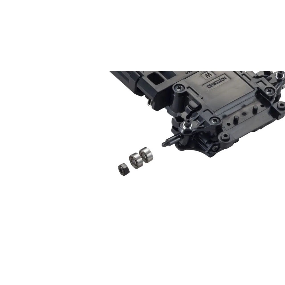 New front knuckles with integrated kingpins reduce scrub by 1.5mm on each side compared to the MR-03, realizing sharper and more linear control. The change to 3mm inner diameter ball bearings also reduces rotational resistance.
