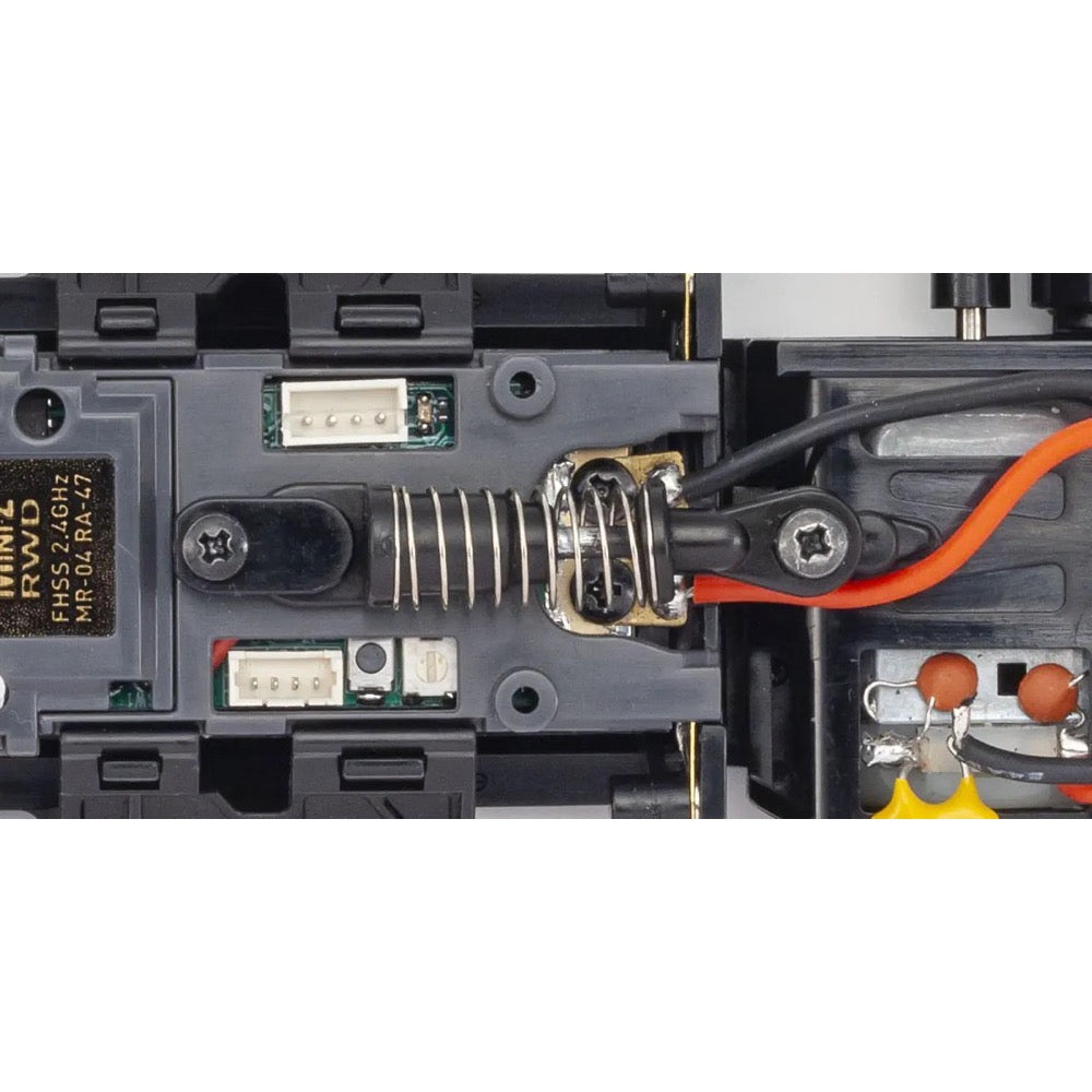 The car is powered by four AAA alkaline or rechargeable nickel-metal hydride batteries. The batteries are mounted lower than the MR-03, lowering the center of gravity of the entire chassis to deliver improved cornering stability and straight-line handling.