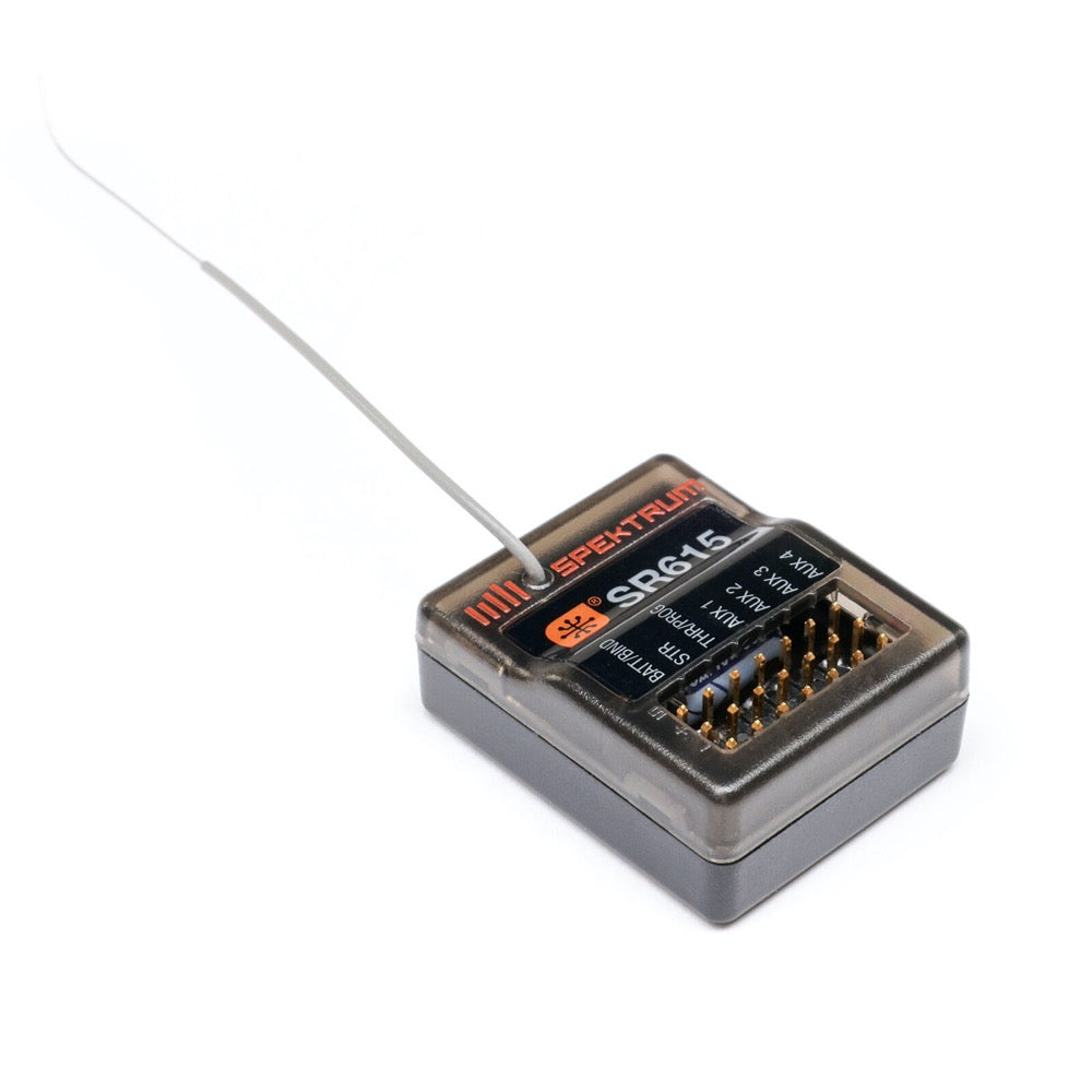 Built around frequency-agile DSMR technology, the SR615 6-channel receiver delivers superb range and response, especially in noisy RF environments where a solid 2.4GHz link is crucial. Not only is the 2.4GHz link solid, but this receiver also implements a lightning-fast 5.5ms frame rate, providing a quicker, low-latency connection for the pro-level enthusiast. It's potted with an epoxy material to help protect the board from water and vibrations. Plus, while binding, you have the choice of SmartSafe™ and preset 'Gas' failsafe options.