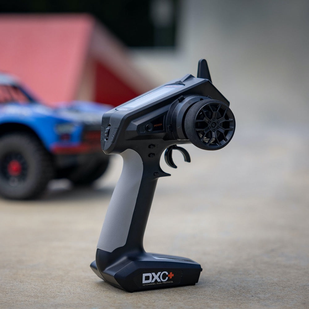 The DXC+ is compatible and able to bind with SLT protocol equipped vehicles, such as the Losi NASCAR RC Racecars, ARRMA GROM small-scale bashers and Axial SCX24 micro crawlers. With this transmitter, you'll be able to drive SLT and DSMR protocol receivers with one transmitter. Dual Protocol means one perfect control.