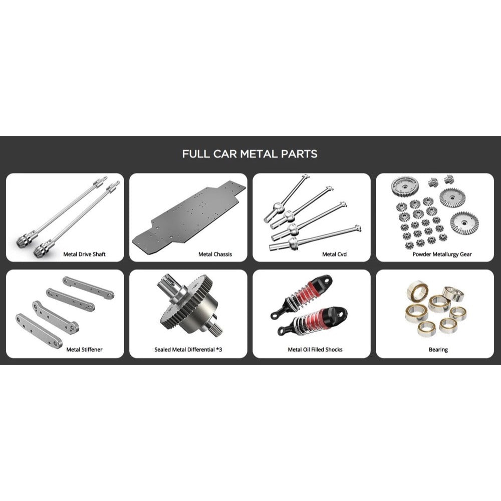 • Drivetrain: 4WD (4WD) with front/center/rear metal differentials.