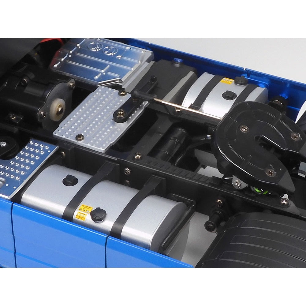 Tamiya Multi-Function Control Units (included for Japanese market only, available separately offer light, sound, and vibration operation to accompany your R/C truck experience. Engine sounds have been digitally recorded from an actual truck, and together with air horn, gear shifting, and many other realistic sounds, give you the feeling that you are driving the real thing! Headlights, brake lights, fog lamp, hazard lights and turn signal operation are also at your fingertips.
