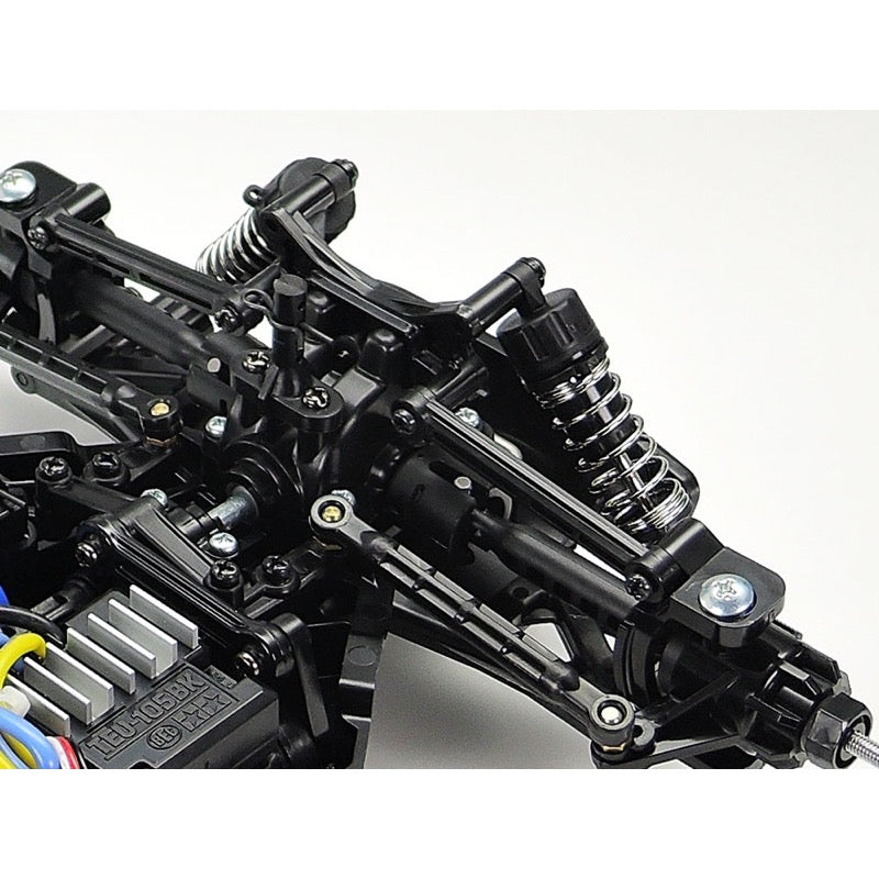 • Bathtub-type frame has longitudinal battery and R/C mechanism placed flat for low center of gravity.