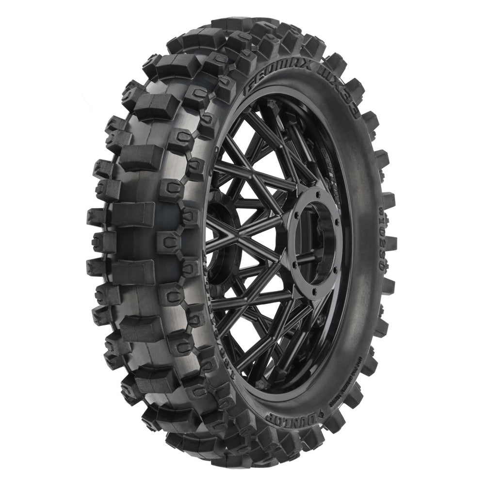 Proline 1023010 Dunlop Geomax MX33 V2 Bead CR4 Rear Tire Mounted on Bullyspoke Black Wheel Promoto-MX