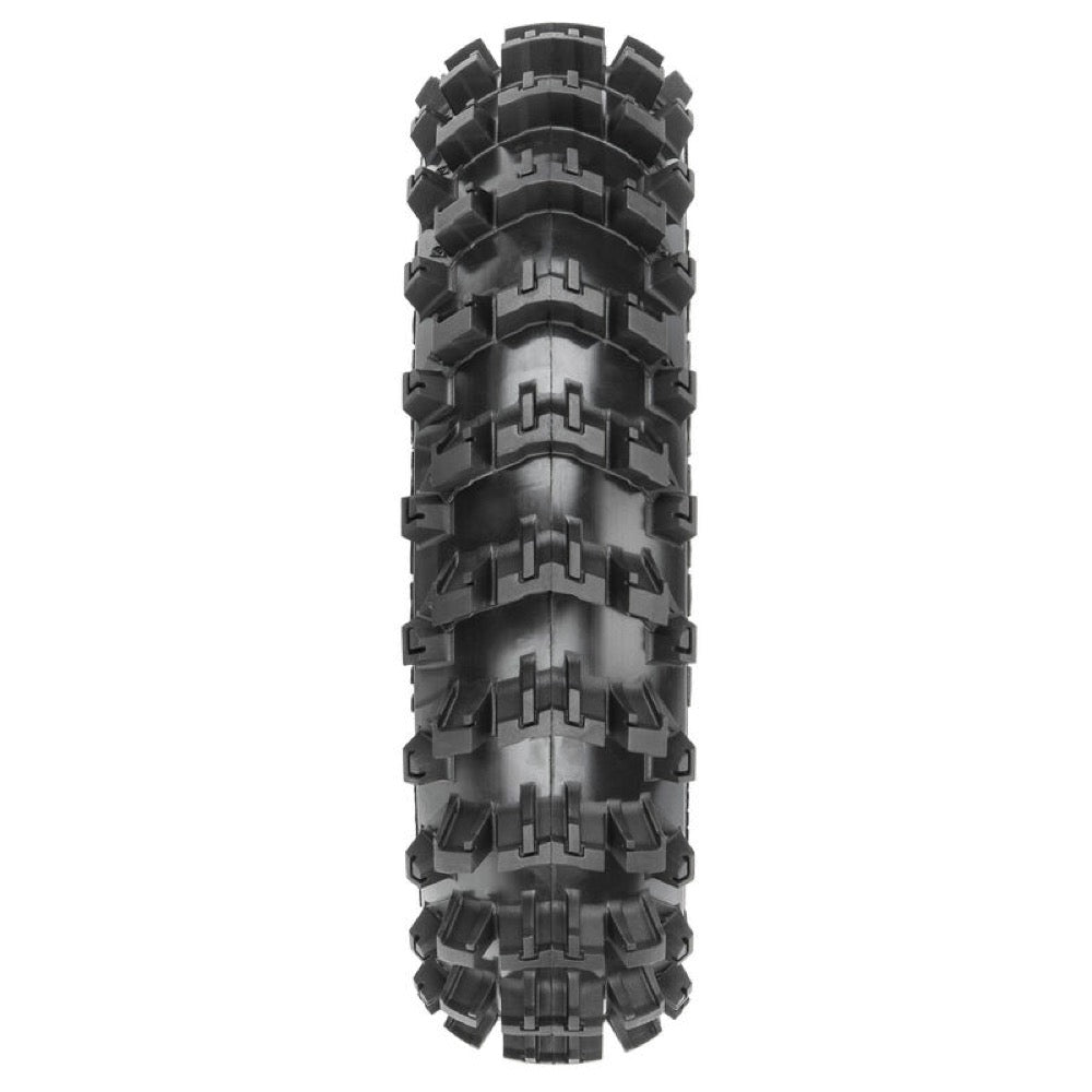 The MX14 delivers huge forward bite on starts, straights, and powering out of corners thanks to its "scoop" like design. It features Dunlop's "V-Block" lug design which makes it ideal for loose dirt, mud, or sandy conditions. Enhanced absorption/damping performance keeps the tire on the ground and digging in. Pair it with the MX33 front (PRO1022910) for the ultimate in scale Moto style.