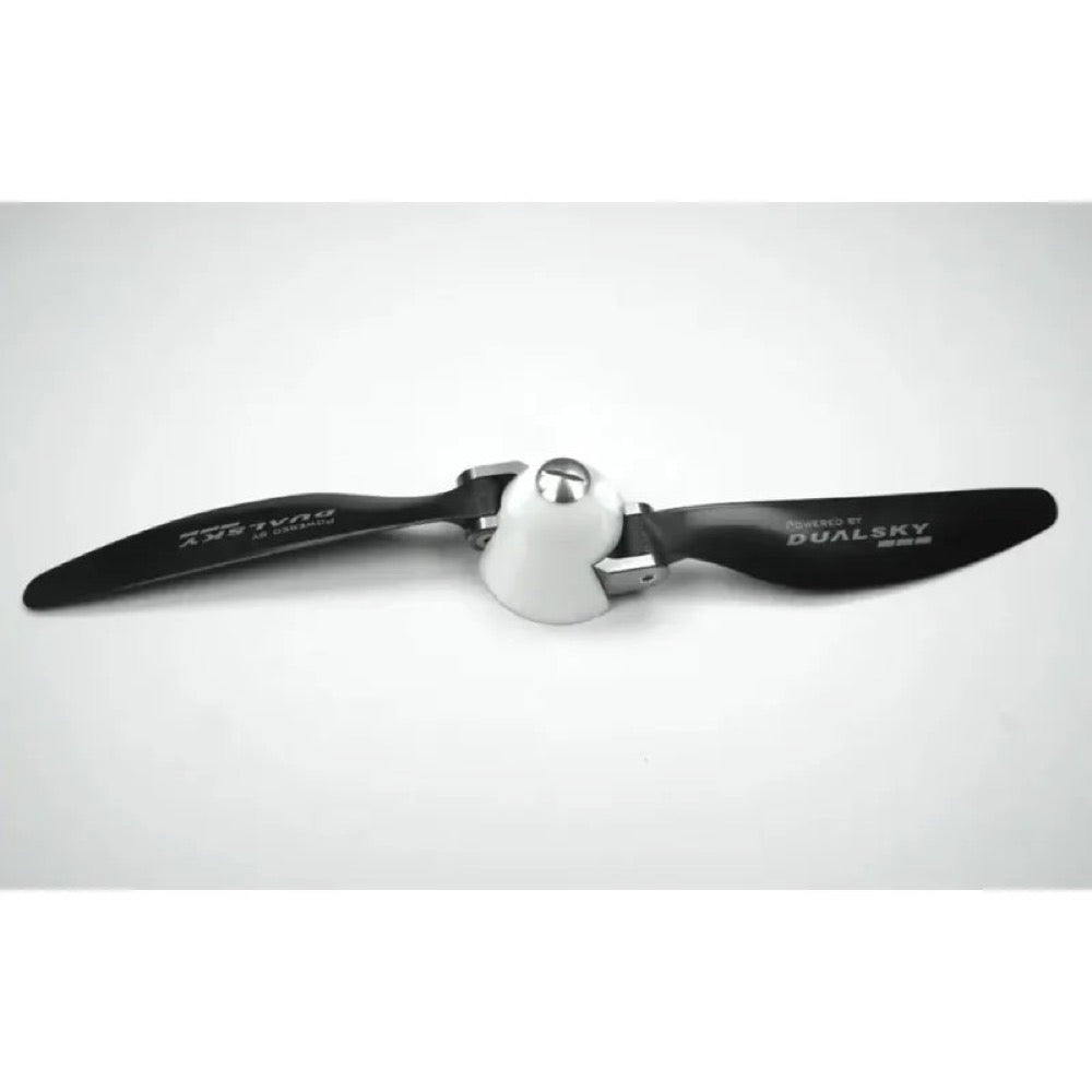 These DFP folding propeller blades by Dualsky are made from carbon fibre composite nylon plastic. They can be used in many applications, including RC glider classes such as F5B, F5K, eRES, and F5J.