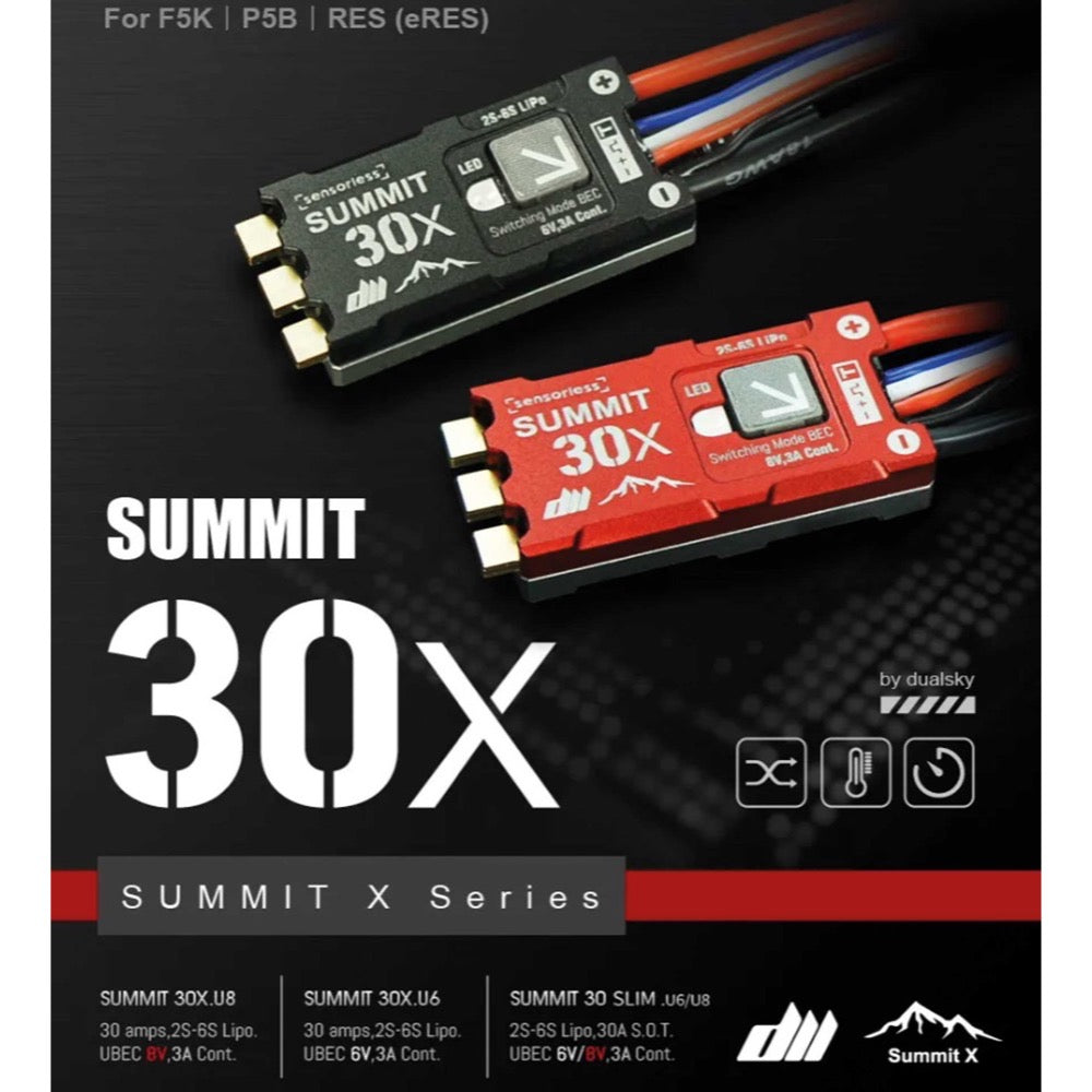 The new Dualsky SUMMIT 30 SLIM 6V SBEC ESC is the latest 25A lightweight speed control from this excellent manufacturer. This speed control works flawlessly with all brushless motors, not just Dualsky motors.