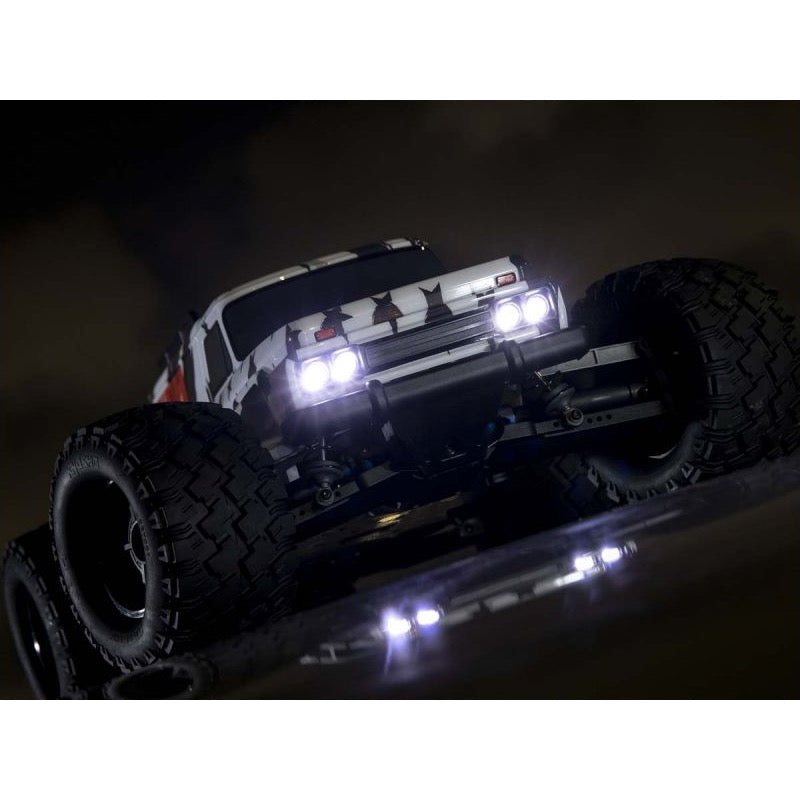 Aggressive old school truck design with slick graphics and roof guards providing added scale realisim and impact protection. Molded front grills, LED ready lights(Light buckets for optional LED lights) and 2 colors to choose from.
