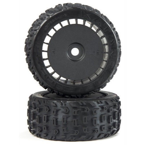 Includes 2 x Black wheels with pre-glued belted dBoots Katar tires