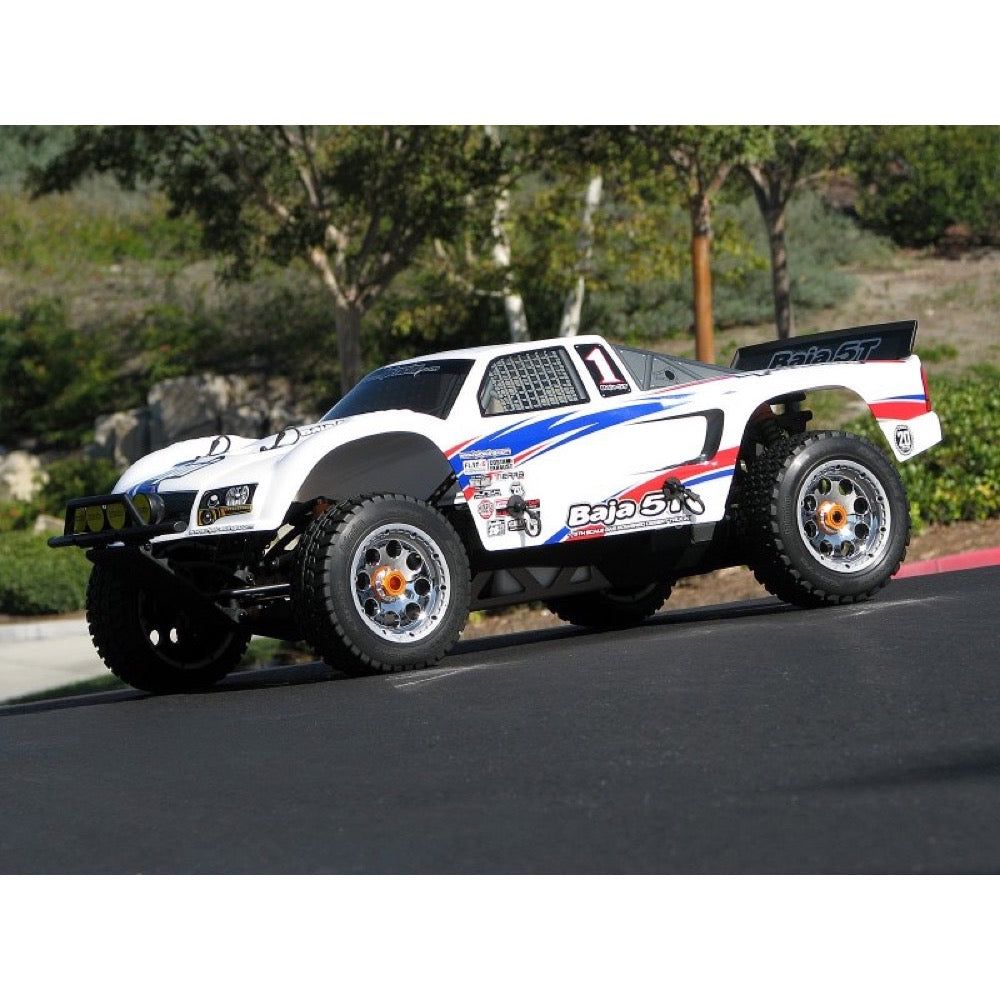 HPI Racing Outlaw Wheels are designed for the Baja 5T line of 1/5th scale trucks. The tyre is held on with bead lock rings to keep it securely mounted on the wheel without the need for messy glue. Made from tough high-impact nylon with metal reinforcements around the hex hubs for extra durability, these wheels are available in your choice of white, black, gunmetal and shiny chrome to help you match your paint scheme and add a custom look to your truck. Packaged in pairs.