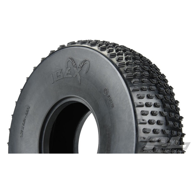 This is a pair of Ibex Ultra Comp 2.2" Tires No Foam. Pro-Line is ready to unleash the Ibex; the ultimate 2.2" Competition Crawling Tire! In nature, the Ibex is a powerful and wild species of mountain goat known for its large horns and incredible climbing abilities on near-vertical rock faces. This amazing animal served as an inspiration for developing the pinnacle of comp crawling tire performance: the 2.2" Ultra Comp Ibex tire in Super Soft Predator compound.