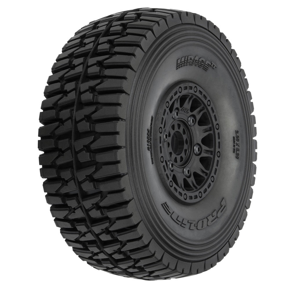 This is a pair of Mirage TT Belted Tires. Pro-Line is proud to announce a tire and wheel combo for your large-scale Desert Truck! The Mirage TT is inspired by full-size trophy truck tires to create a super-scale look while also giving your rig the ultimate performance upgrade with Belted tire technology!