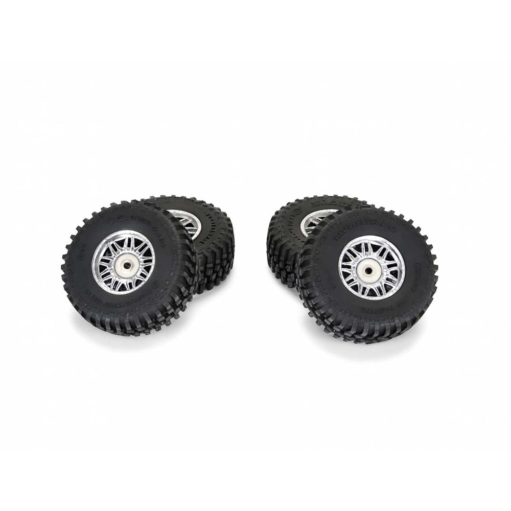 • 4) Flat Iron Front/Rear Tires Mounted 12mm Hex Chrome Diablo