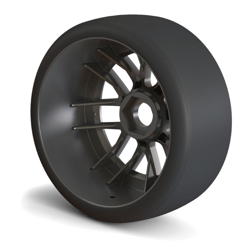 The Goodyear® Eagle NASCAR® Cup Series tire is BELTED to handle extreme power and high speeds with ease. No tire ballooning here! These slick tires and Cup Series wheel will give your Infraction™ 6S a super scale look featuring yellow printed sidewall lettering and gunmetal wheels, just like the Next-Gen Cup cars use! Pair these wheels and tires with the NASCAR® Cup Series Ford® Mustang body (PRM158700) to completely transform your ride into a Stock Car racing machine!