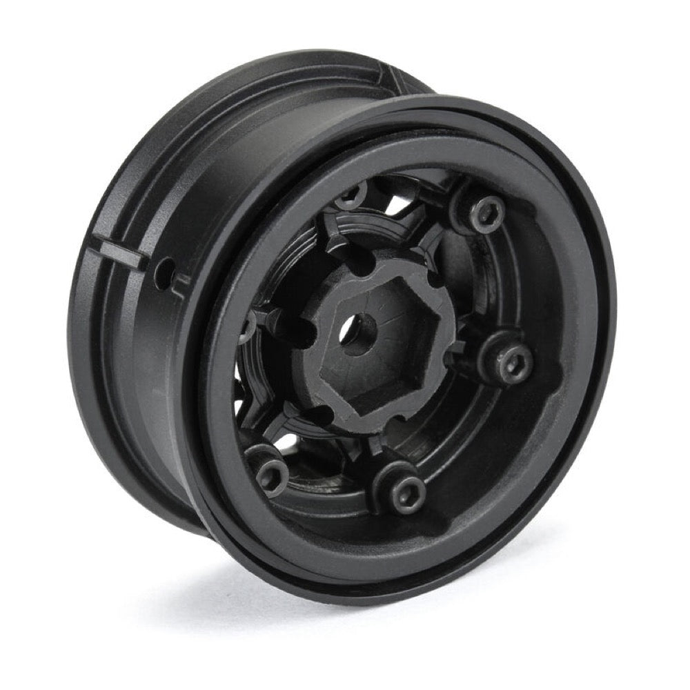 This is a pair of Holcomb 1.55" Black Plastic Internal Bead-Loc Wheels. Introducing an innovative wheel design from Pro-Line: the Holcomb! Give your Class 0 Scale Crawler a unique, retro-inspired look. We've taken our easy-to-assemble, 3-piece plastic wheel design and flipped it inside out: the outer 6-spoke ring now bolts to the inner wheel face with a 12mm hex. The added depth allows for tons of customization with chrome pens or candy paint. The Holcomb is a direct fit for Pro-Line's 1.55" Crawling Tires.