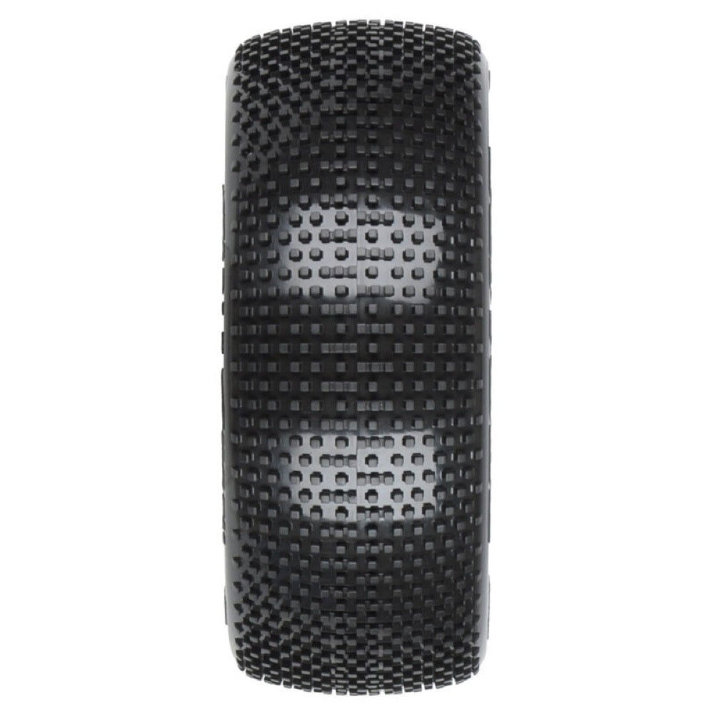 This is a pair of pre-mounted Buck Shot 1:8 Buggy Race Tires. The Buck Shot debuted at the 2017 ROAR National Championships and is already a Winner! The Buck Shot has pins that are very close in size to the amazing Hole Shot 2.0 but the Buck Shot pins are stacked closer together side to side, which provides significantly longer-lasting performance. Unique to the Buck Shot are the alternating elongated bars that provide incredible forward grip! Similar to the extremely popular SwitchBlade tire, the Buck Shot is a directional tire with a different tread on the outside compared to the inside, allowing you to mount the tires in the direction that suits your current track conditions. One side of the tire has standard pins, which is ideal for loose or low traction conditions where you want the tire to add side grip and improve steering. When you mount the tire in the other direction, the connected side tread (Blade) reduces side traction in high-bite or edgy conditions. Racers who have tried the Buck Shot are saying that it is their new favorite tire!