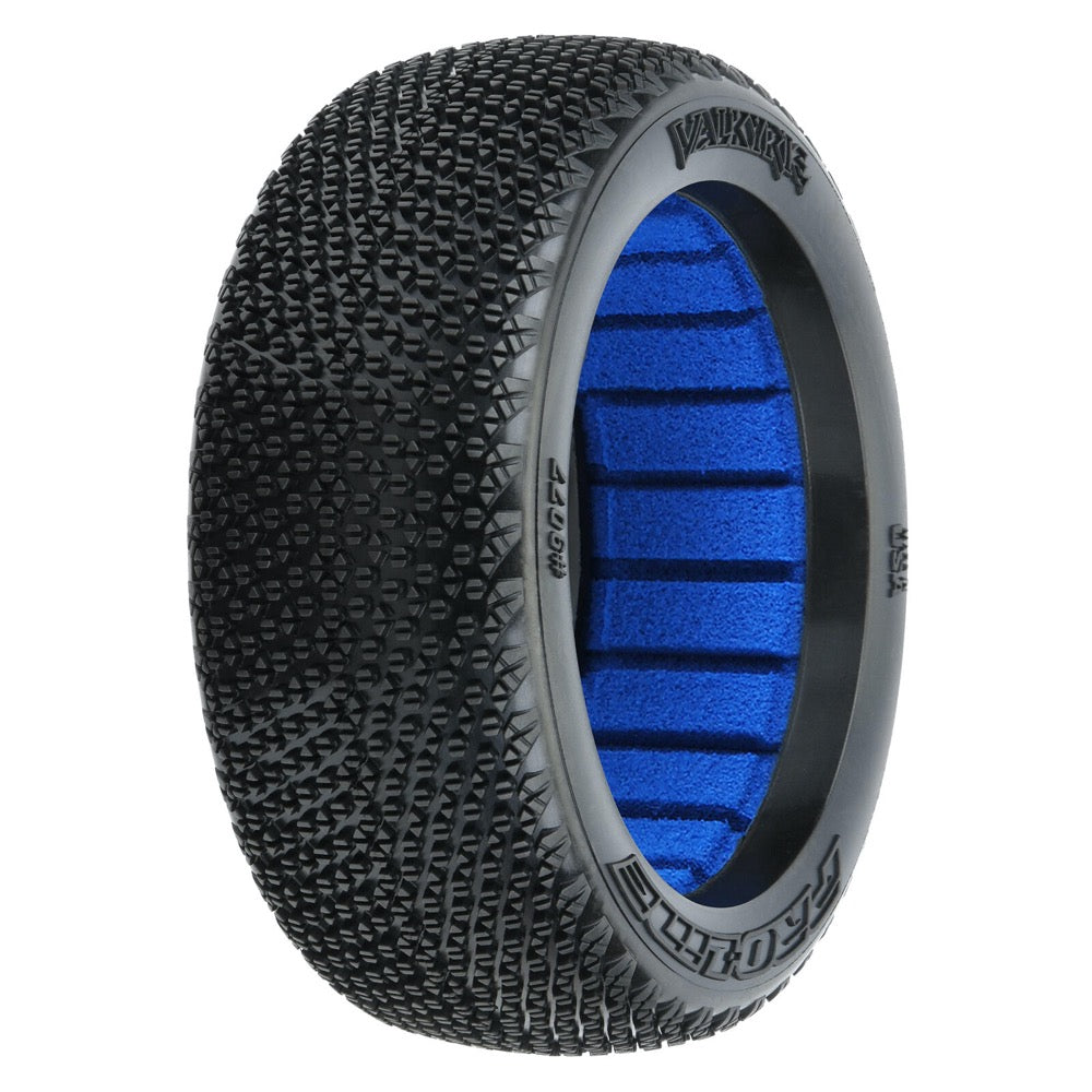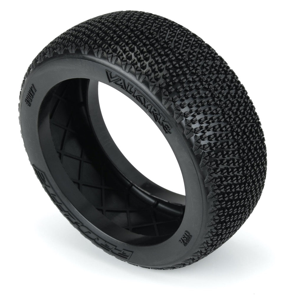 This is a pair of Valkyrie 1/8 Buggy Tires. Introducing the Valkyrie 1/8 Buggy race tire, an evolution of our popular Slide Lock tire engineered for hard-packed, blue-groove, high-grip tracks.