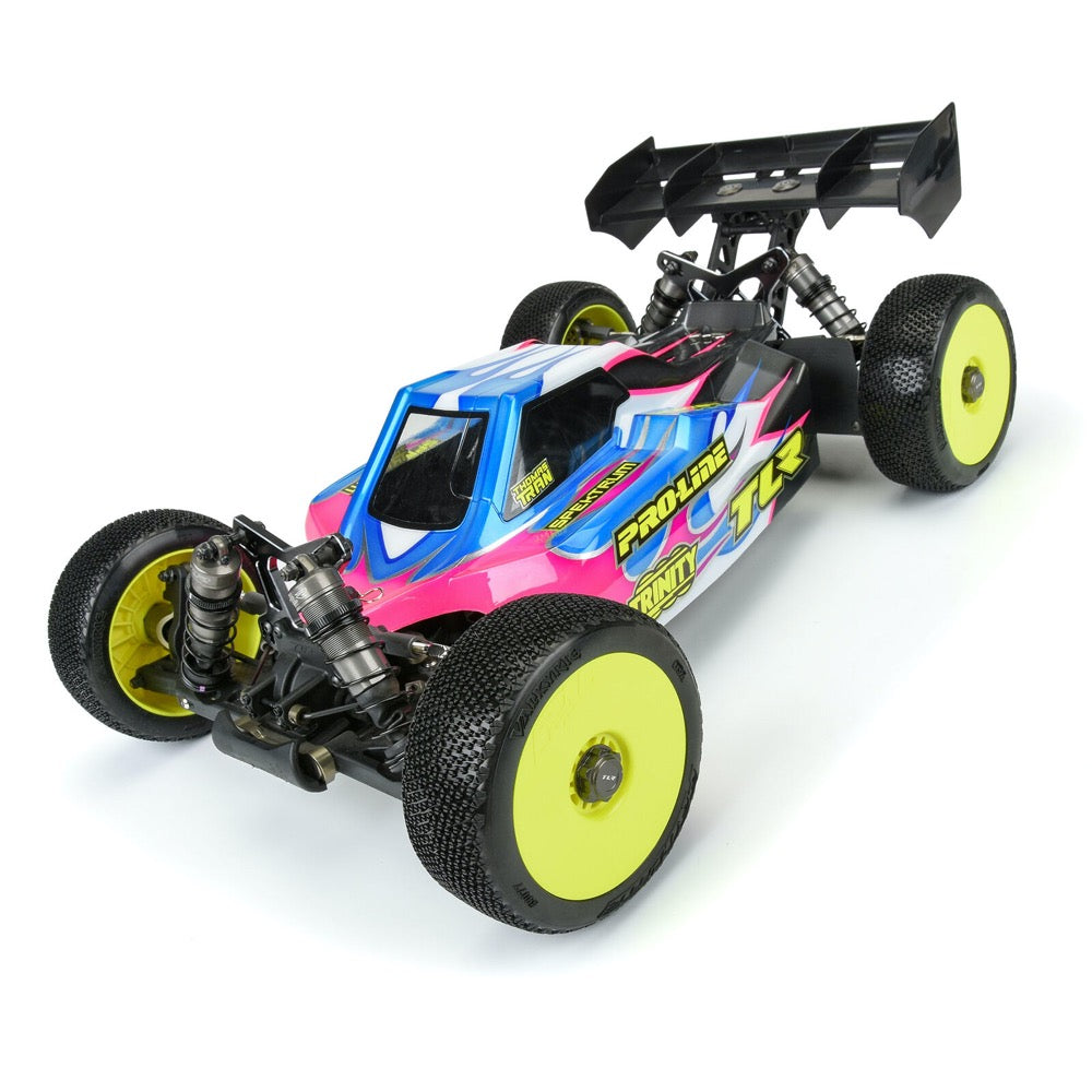 Valkyrie is constructed on Pro-Line's latest generation carcass profile that utilizes a single arc to create the sidewall geometry, then transitions from the sidewall to the crown with a larger radius resulting in a rounder and less edgy appearance. This carcass provides a tailored fit to the wheel and insert package, making mounting a breeze. Racers can expect the Pro-Line Valkyrie tires to deliver improved consistency, drivability, and durability.