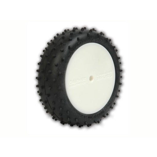 Schumacher's pre glued Mini Spike front tyre in yellow compound on the Revlite hex drive wheel