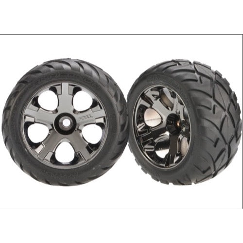 Traxxas 3777A Nitro Front Anaconda Tyres and All-Star Black Chrome Wheels Assembled and Glued (1 left, 1 right)