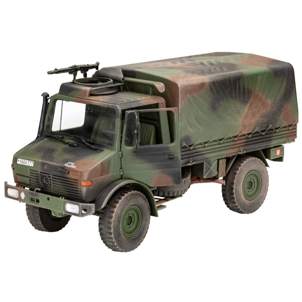 Model kit of the Unimog 2t Milgl. A MG 3 on a rotating ring mount serves as armament.