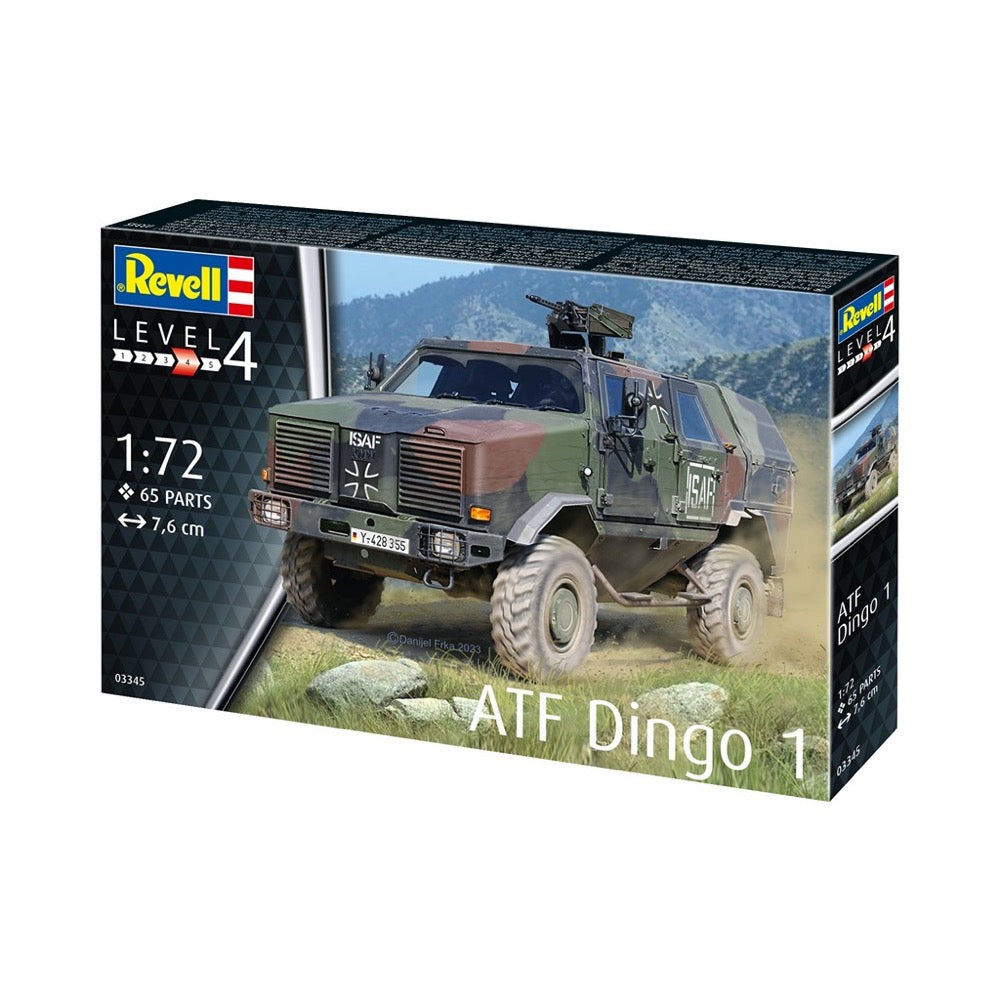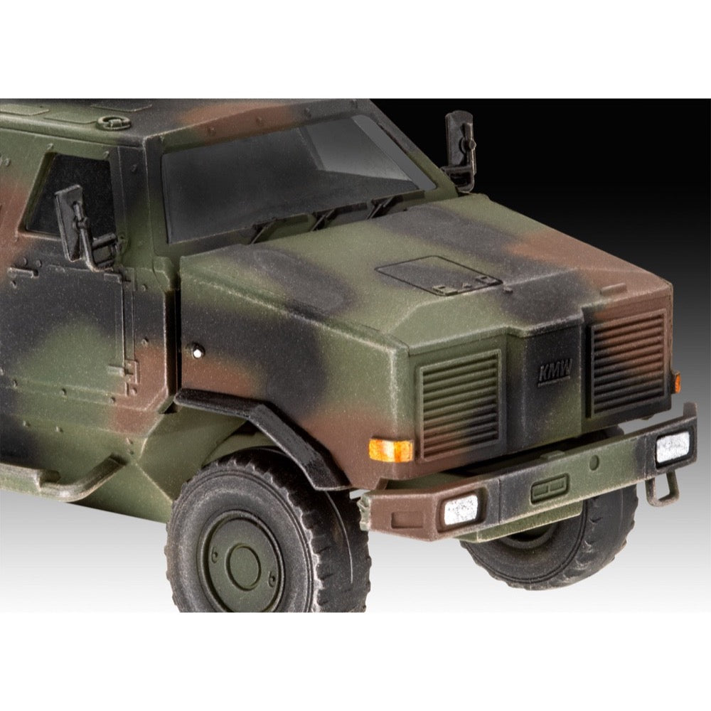 The Allschutz-Transport-Vehicle (ATF) Dingo is an armored, airborne, armed wheeled vehicle for patrol and reconnaissance operations, which is used in Germany, Austria, Belgium and Luxembourg. The ATF Dingo 1 kit is a highly detailed model kit perfect for the experienced model builder. It has 65 parts and is approved for ages 12 and up.