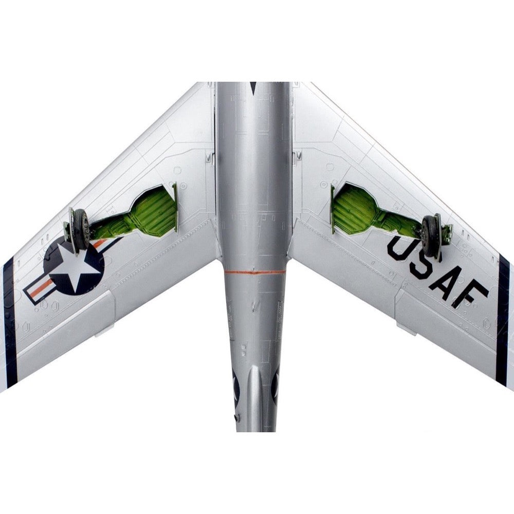 This model kit of the Republic F-84F "Thunderstreak" from the Thunderbirds squadron includes bomb parts and a dolly too!