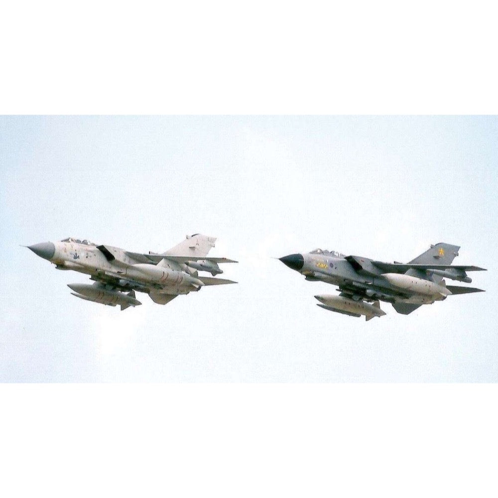 The Tornado is available in several versions, two of which are included in this set, the first Bundeswehr version and the basic version of the Royal Air Force. The Tornado has one of NATO's most successful and versatile weapon systems and has already proven itself in many conflict situations. Due to the large 2250 l auxiliary tanks, the RAF Tornados also have an exceptional range. The top speed is 1340 km/h at an altitude of 150 m.